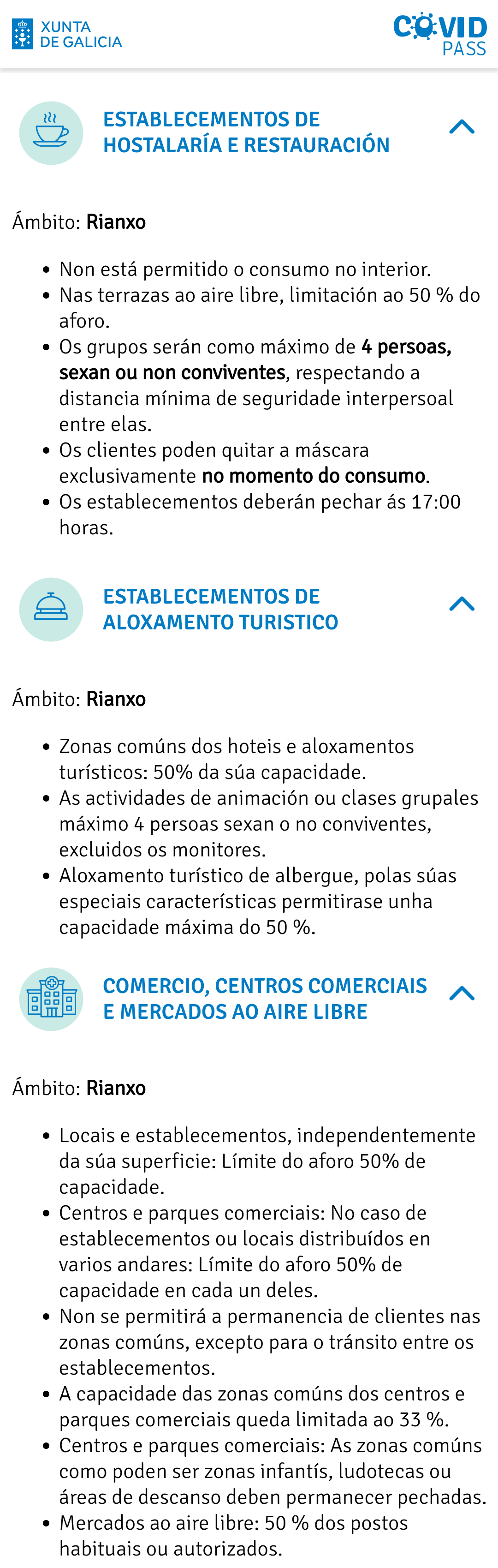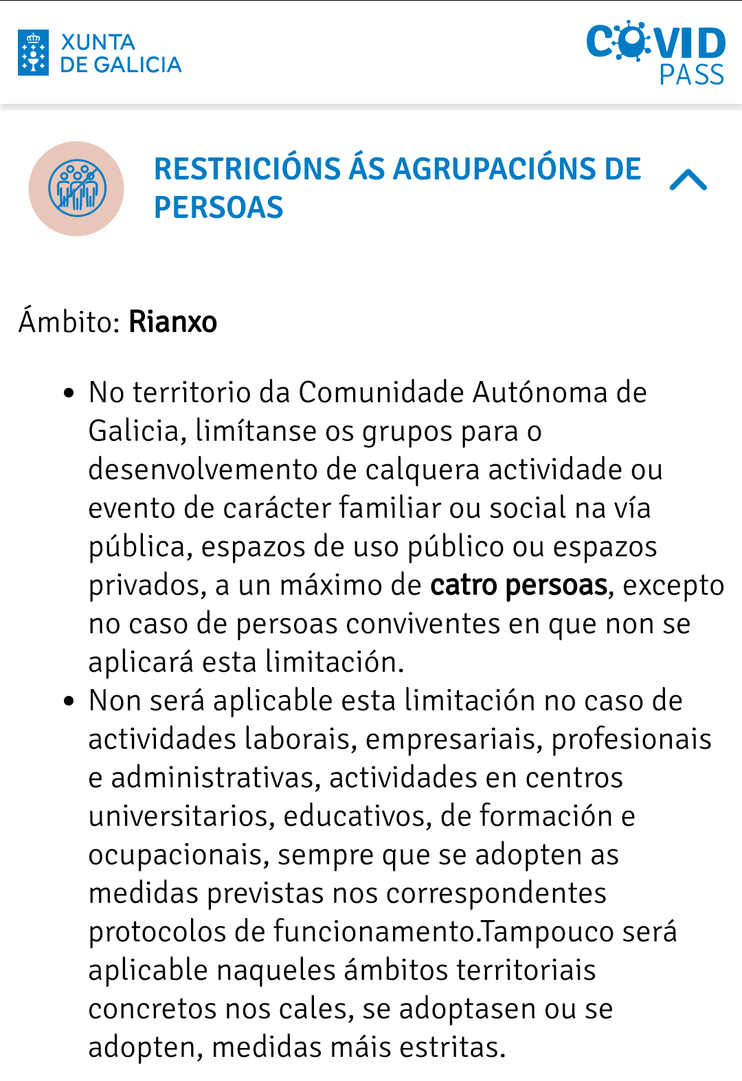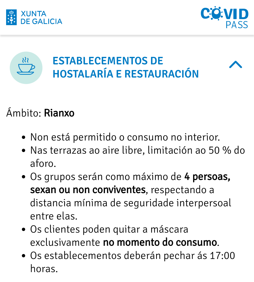 Co fin de facilitar a comprensión de todas as medidas, recompilamos toda a información recollida na app Covid Pass que a Xunta de Galicia puxo a disposición de toda a cidadanía para dispositivos móbiles.