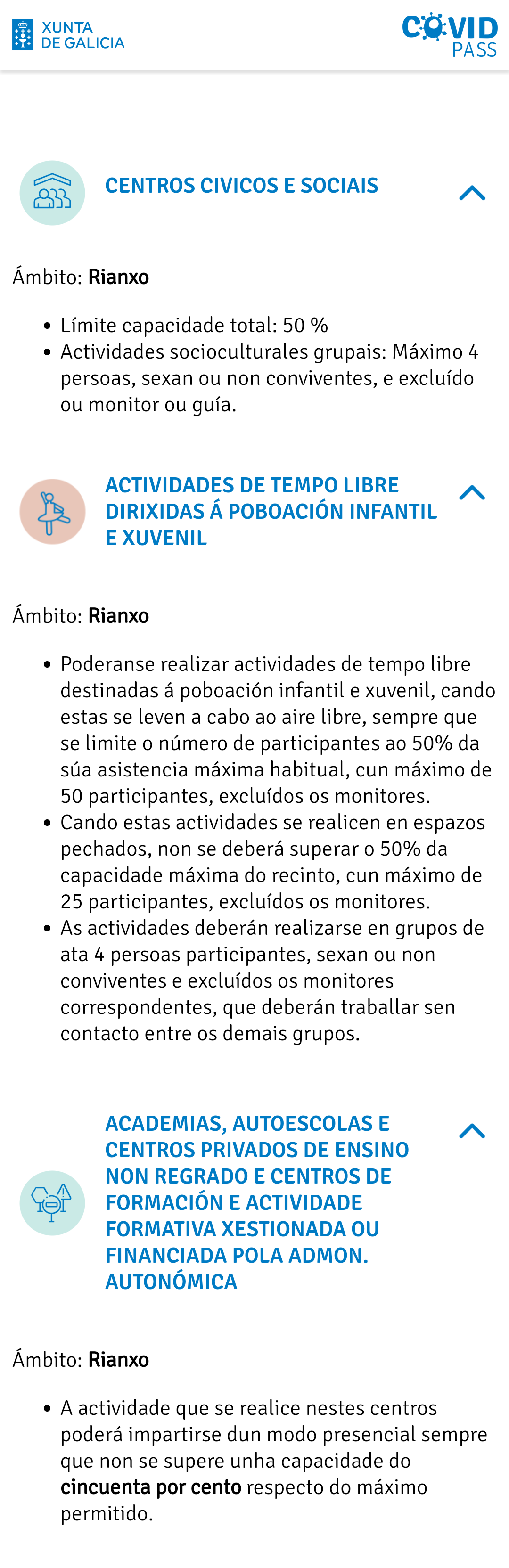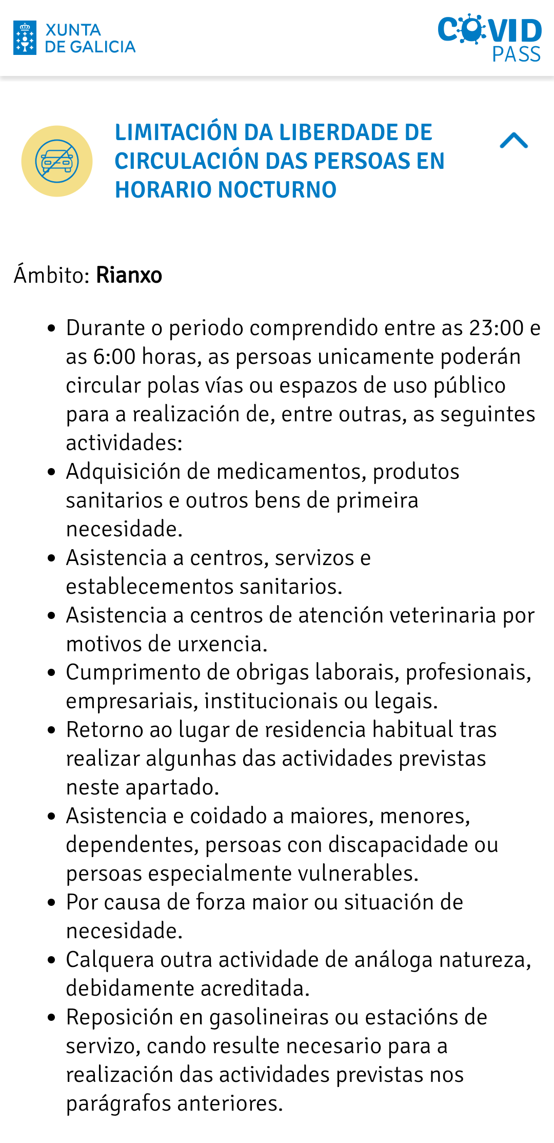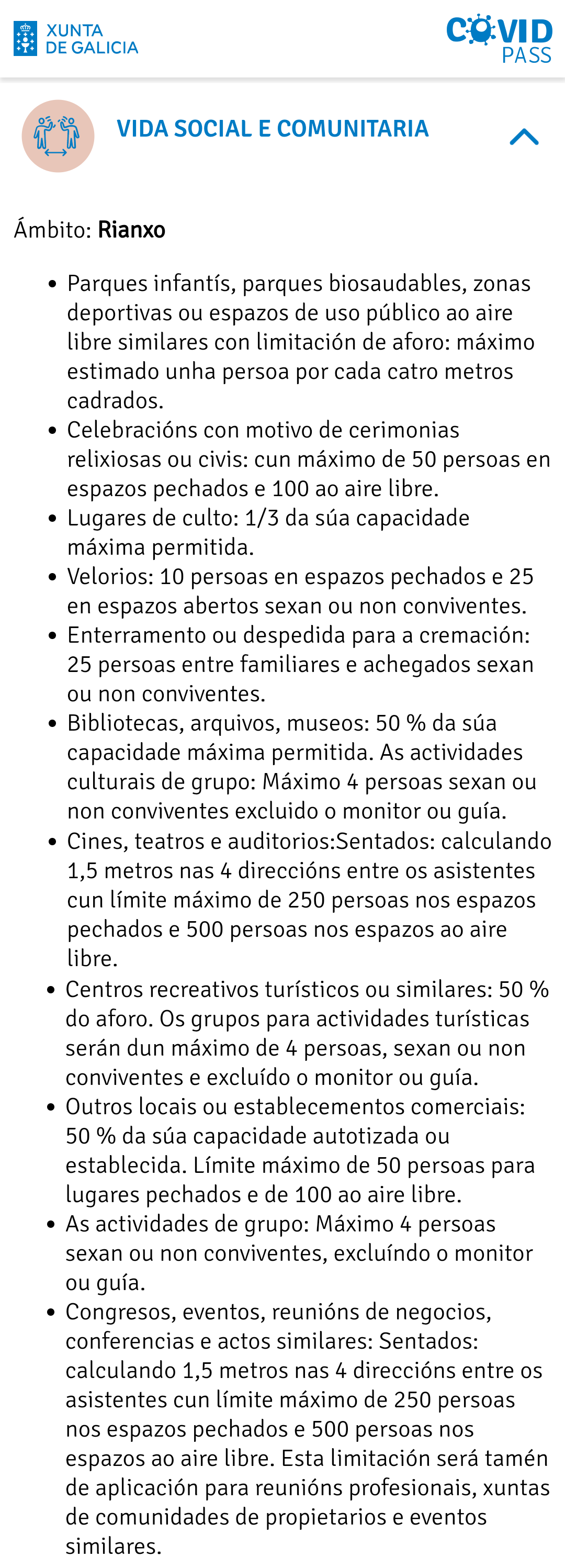 Co fin de facilitar a comprensión de todas as medidas, recompilamos toda a información recollida na app Covid Pass que a Xunta de Galicia puxo a disposición de toda a cidadanía para dispositivos móbiles.
