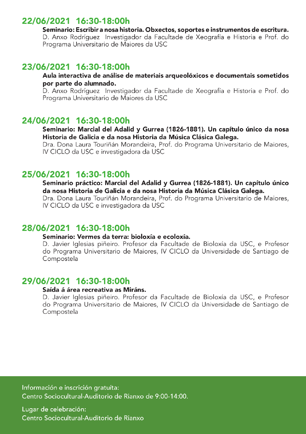Estes horarios poden sufrir modificacións por razón de programación ou imprevistos, que, de ser posible, anunciaranse.