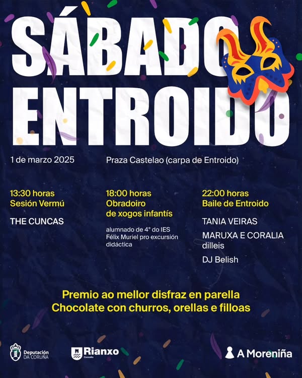 Do 28 de febreiro ao 08 de marzo, organizado polo Concello de Rianxo e as entidades asociativas, con actividades para todos os públicos: música, concursos, xogos, inchables e moita diversión.