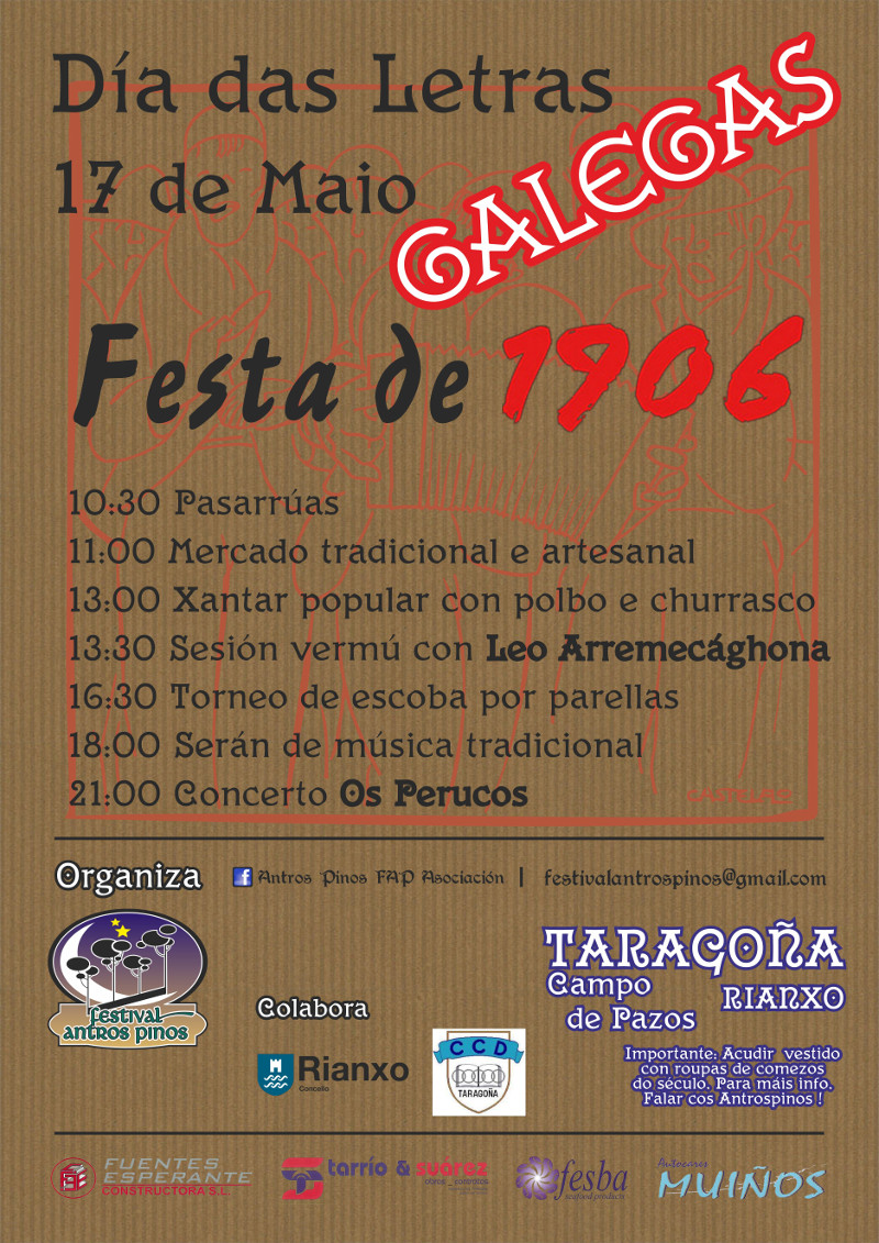 A Asociación Festival Antrospinos organiza un ano máis o domingo 17 de maio, día das Letras Galegas, a Festa de 1906 en Campo de Pazos Taragoña.