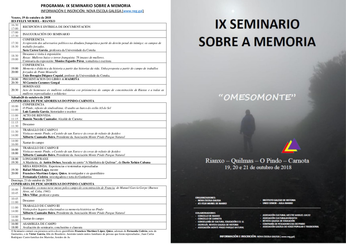 - IX SEMINARIO SOBRE A MEMORIA organizado por Nova Escola Galega - Concello de Rianxo