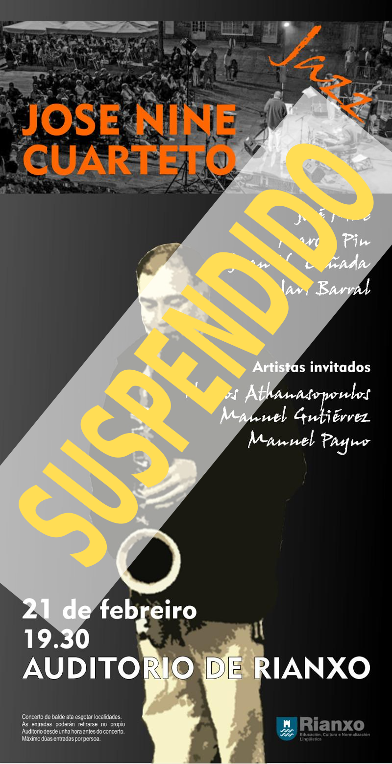 O vindeiro sábado 21 de febreiro, ás 19.30 horas, terá lugar no Auditorio de Rianxo un concerto de jazz a cargo de José Nine Cuarteto, agrupación formada por José Nine, Marcos Pin, Juan V. Cañada e Javi Barral. No concerto contarán con Thanos Athanasopoulos, Manuel Gutiérrez e Manuel Payno como artistas convidados.