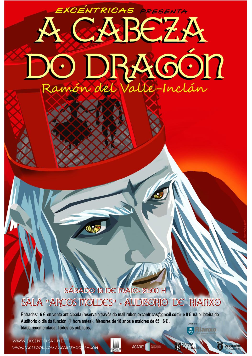 Producións Excéntricas presenta a súa nova produción A Cabeza do Dragón de Ramón del Valle-Inclán na Sala Arcos Moldes do Auditorio de Rianxo. A representación terá lugar o vindeiro sábado 13 de maio ás 21.00 horas.