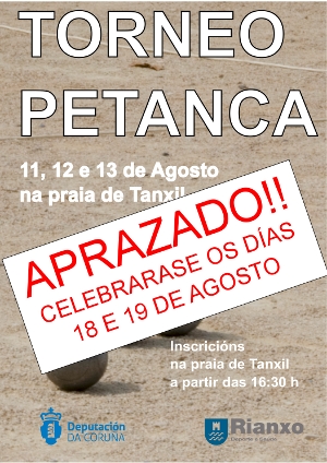 APRÁZASE O TORNEO DE PETANCA. CELEBRARASE OS DÍAS 18 E 19 DE AGOSTO EN TANXIL.