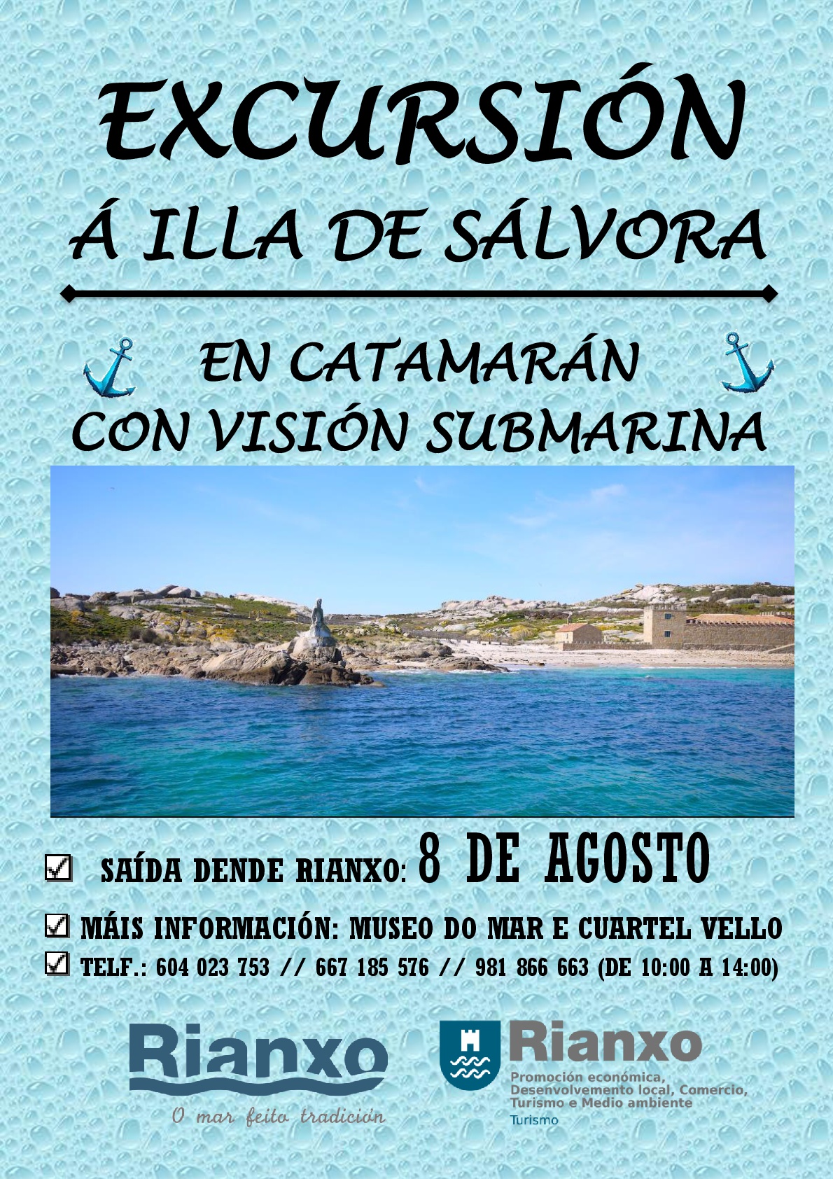 A saída será dende o Porto de Rianxo ás 12 h, a bordo dun catamarán con visión submarina, e o regreso dende a illa será ás 17 h. Durante a travesía e na illa, as persoas contarán co servizo de guía, así como degustación de mexillóns e bebidas na viaxe de volta.