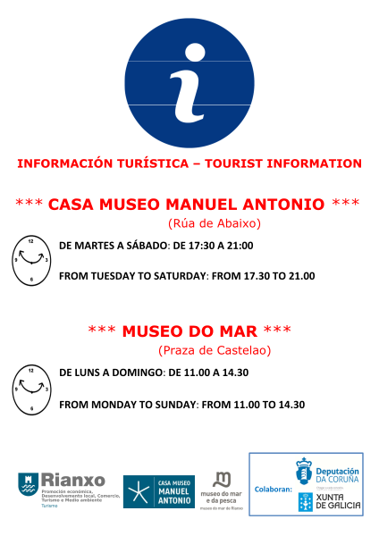 Novos horarios dos puntos de información turística de Rianxo, até o 14 de setembro.