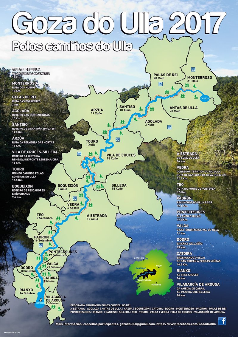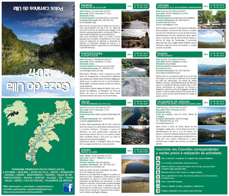 Un ano mais, o Concello de Rianxo xunto con outros 18, formará parte do programa de sendeiros "Goza do Ulla". Como xa coñecedes, cada un dos concellos bañados polo río Ulla, propón un sendeiro que percorra o río.